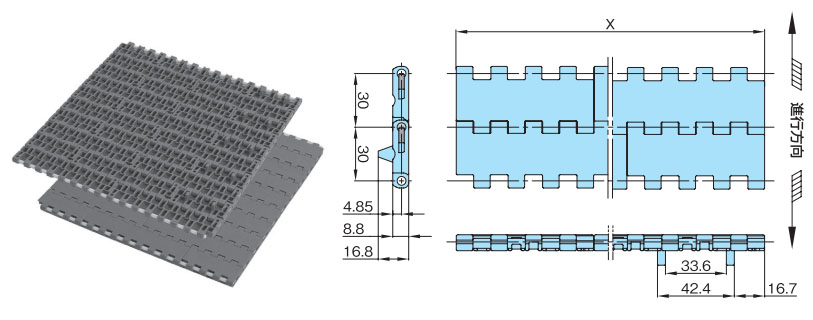 プラスチックモジュラーチェーンWT3005G-K形 主要諸元