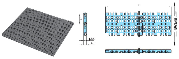 プラスチックモジュラーチェーンWT3086-K形 主要諸元