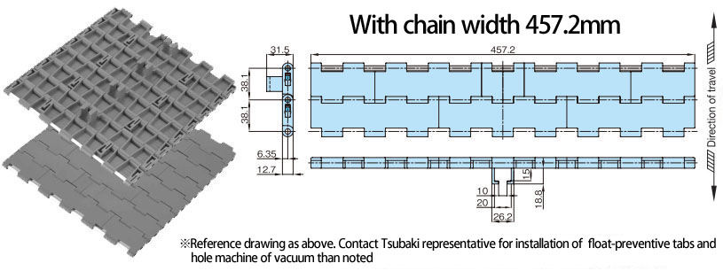 プラスチックモジュラーチェーンWT3835TRN-K形 主要諸元