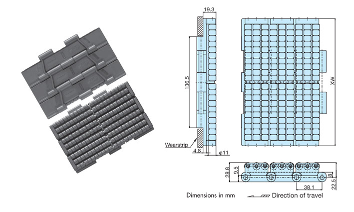 • Nota 4: Se recomienda el acero inoxidable (laminado en frío) para tira de desgaste. No se recomienda el UHMW-PE (polietileno de ultra alto peso molecular) ya que es el mismo material.