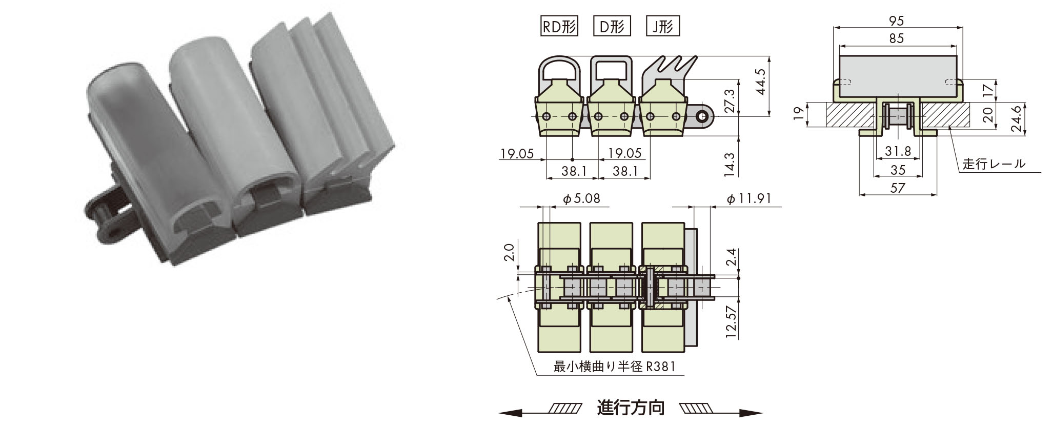 • ・Las cadenas de sujeción son cadenas que sujetan el objeto transportado por ambos lados y lo suben y lo bajan.