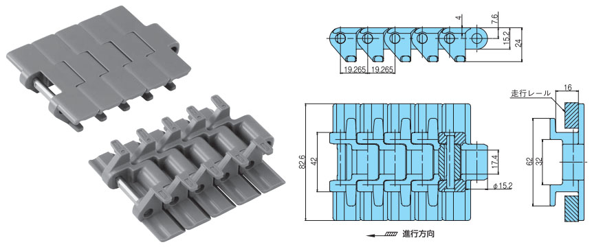 • ・従来のプラトップチェーンの約1/2のチェーンピッチを採用。コンベヤの低騒音化や乗継部のスキマを小さくできます。