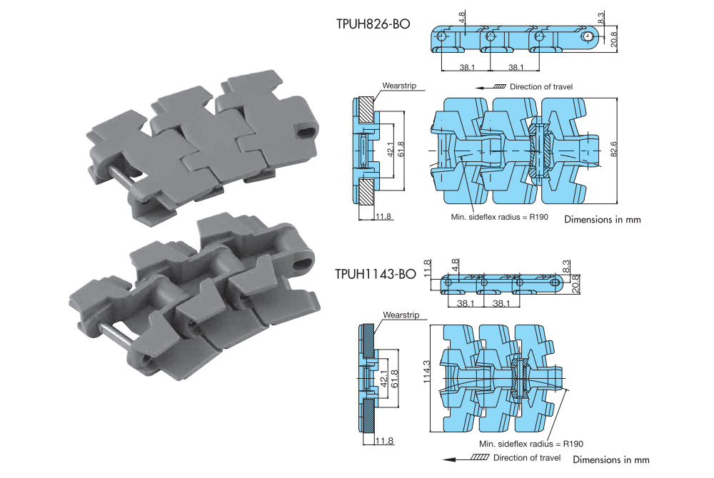 especificaciones principales la cadena Superior de plástico tipo TPUH-BO
