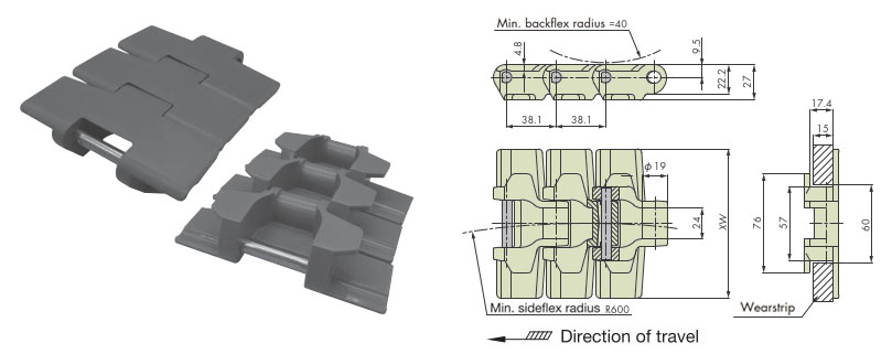 Eslabones de cadena fabricados con poliacetal especial Baja fricción / antidesgaste