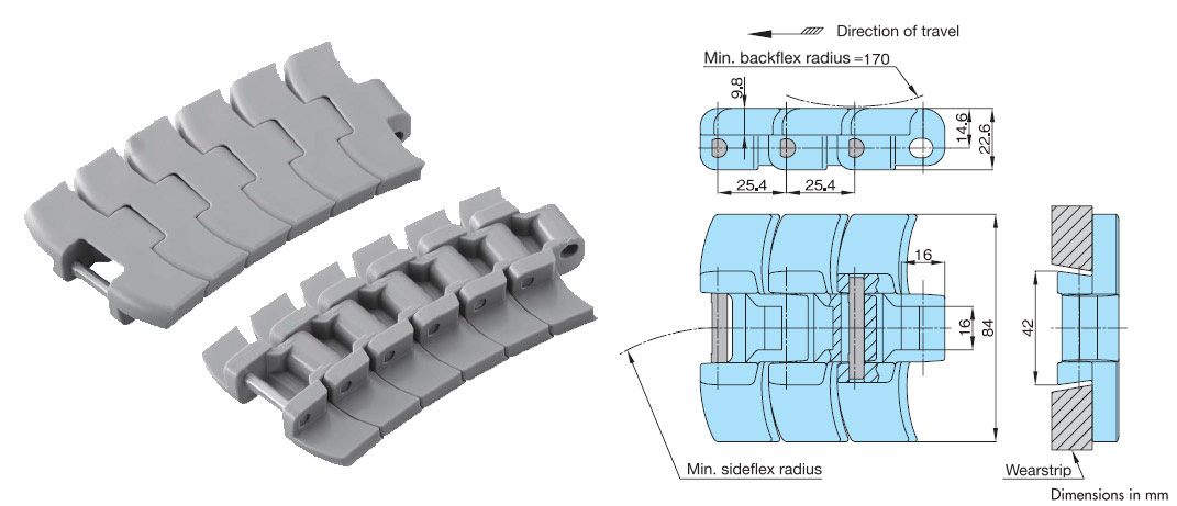 • ・従来までのプラトップチェーンより欠けにくい、トッププレートの厚み9.8mm を採用。