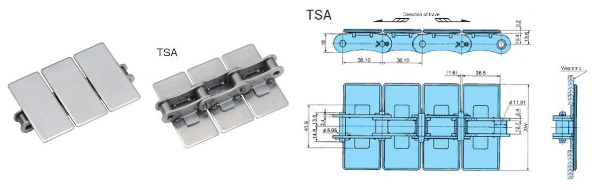 especificaciones principales cadena superior de acero inoxidable tipo TSA