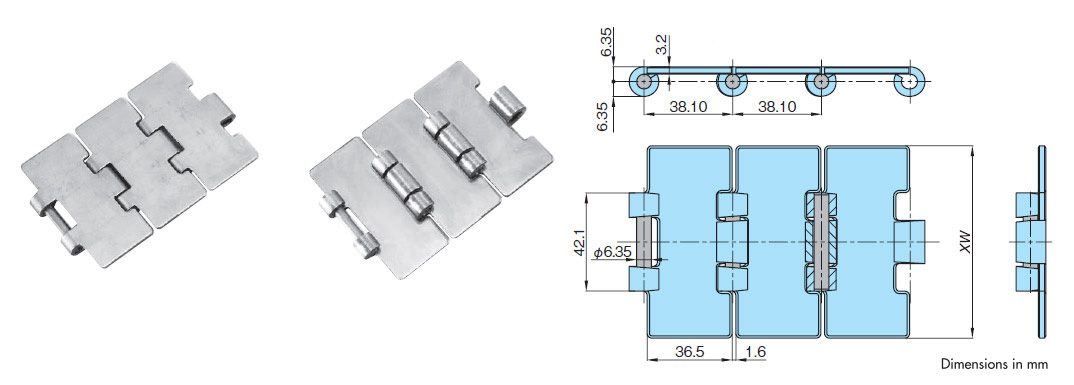 especificaciones principales cadena superior de acero inoxidable tipo TT