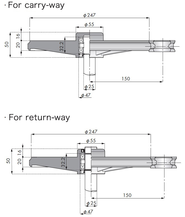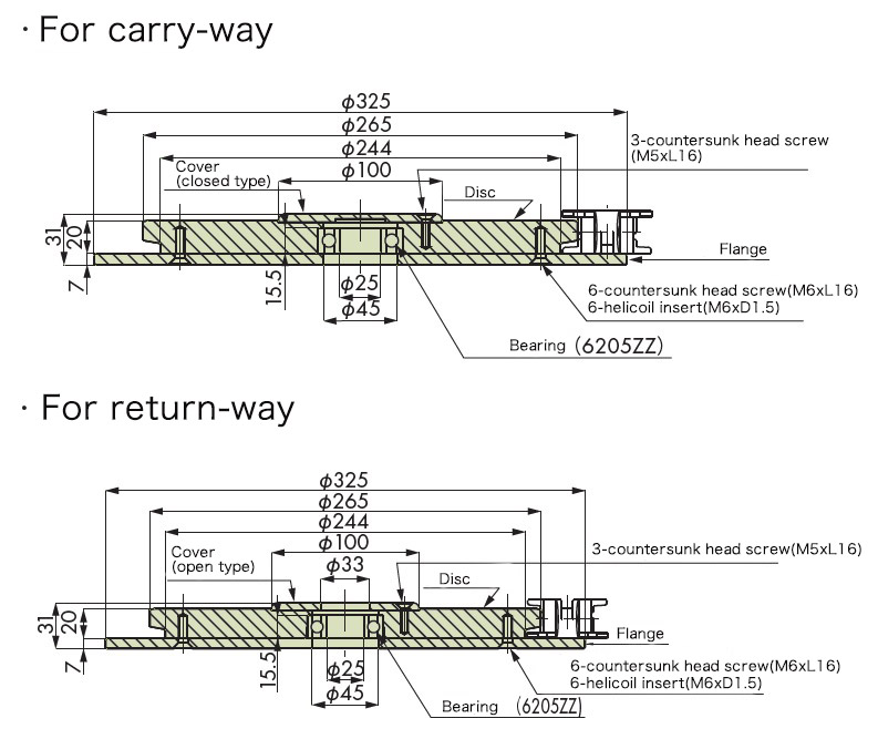 Se pueden utilizar piñones RS tipo B con un número de dientes superior al que se muestra en la tabla anterior. El modelo RT600 se puede utilizar con piñones RS tipo B de 12T o más grandes. Lo mismo se aplica a las especificaciones del acero inoxidable.