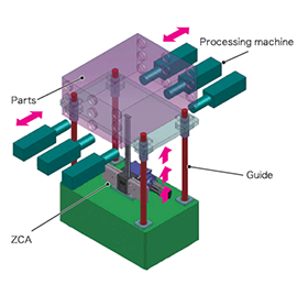 La caja de la cadena es baja, aproximadamente 1/10 de la altura de la carrera, y al integrarla con la unidad de accionamiento, se vuelve aún más compacta, lo que permite instalarla en un espacio reducido.