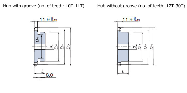 | Número de modelo | Número de dientes | círculo primitivo diámetro DP mm |