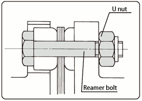 El par de apriete admisible viene determinado por la fuerza de fricción entre el tornillo escariador y el disco al apretar la tuerca en U. Si se aplica una carga superior al par de apriete admisible, se producirá deslizamiento, lo que puede dañar el acoplamiento. Tenga en cuenta que el par de apriete admisible puede disminuir según el método de fijación; consulte el catálogo para obtener más información. |