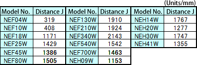 No hay problema con los espaciadores estándar ni con los de un solo tipo. Para los espaciadores largos, si la distancia entre las caras de los extremos del buje (dimensión J) supera la indicada en la tabla a continuación, se requiere una estructura especial para soportar el peso del rodamiento; por favor, póngase en contacto con nosotros.