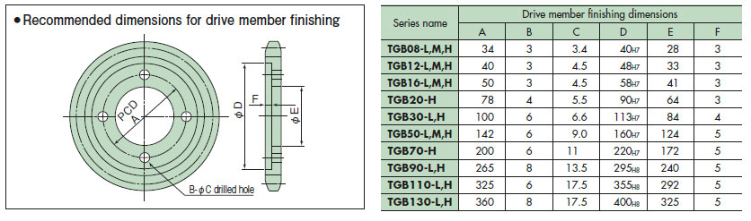 | Q9 | Me gustaría instalar un piñón en la serie TGB. ¿Cuáles son las dimensiones de mecanizado recomendadas para el piñón? |