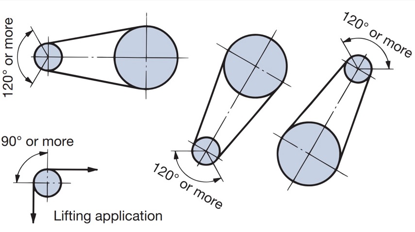 En los siguientes casos, se debe prestar atención al diseño y la colocación. Recomendamos el uso de rodillos guía y tensores.