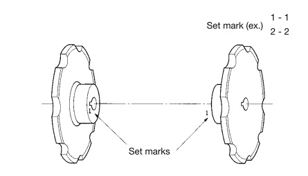 Esto es distinto del «ajuste de fase», que alinea la relación posicional entre la ranura y los dientes. Si se requiere ajuste de fase, especifíquelo por separado. * "Alineación de fase": Véase "P15. ¿Es posible especificar la relación posicional entre los dientes de la rueda dentada y la ranura de la chaveta?"Juego de 2 (misma orientación del buje)
